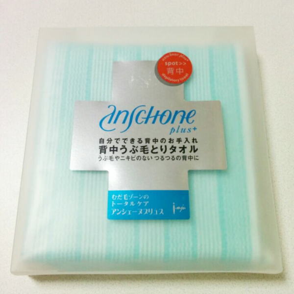 さて、背中のムダ毛ですが、お勧めのアイテムがあります。それは「アンシェーヌプリュス」シリーズの「デピラトリータオル」です。脱毛、脱色、除毛など、むだ毛ケアに対応し、使い方は、風呂で背中を洗うようにマッサージするだけです。これだけでつるつるの背中になれるのですから、さすがはむだ毛対策のスペシャリストの道具だけのことはあります。